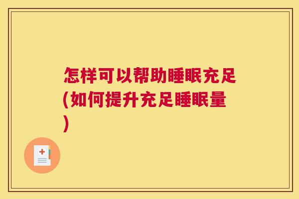 怎样可以帮助睡眠充足(如何提升充足睡眠量)